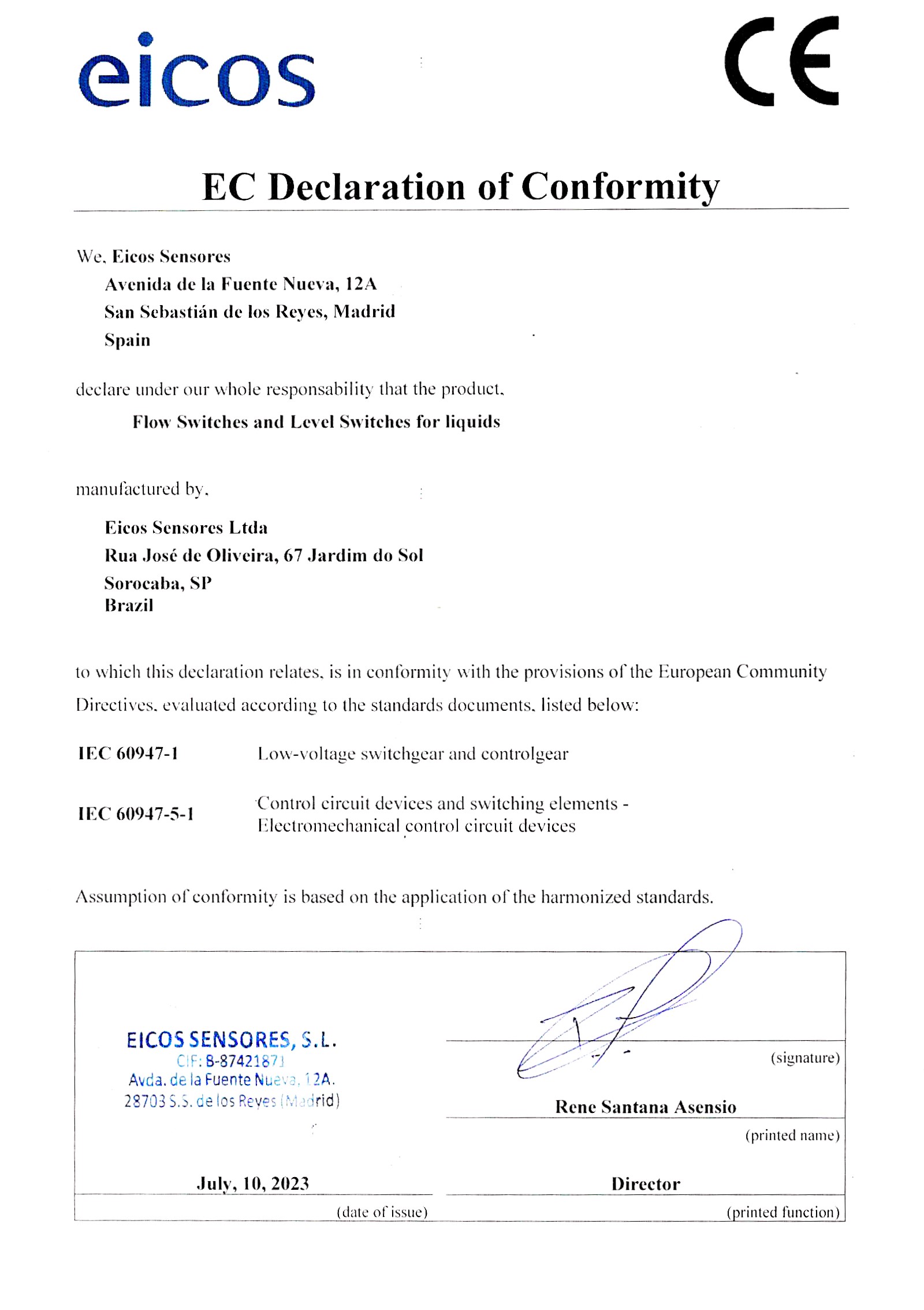 EC Declaration of Conformity